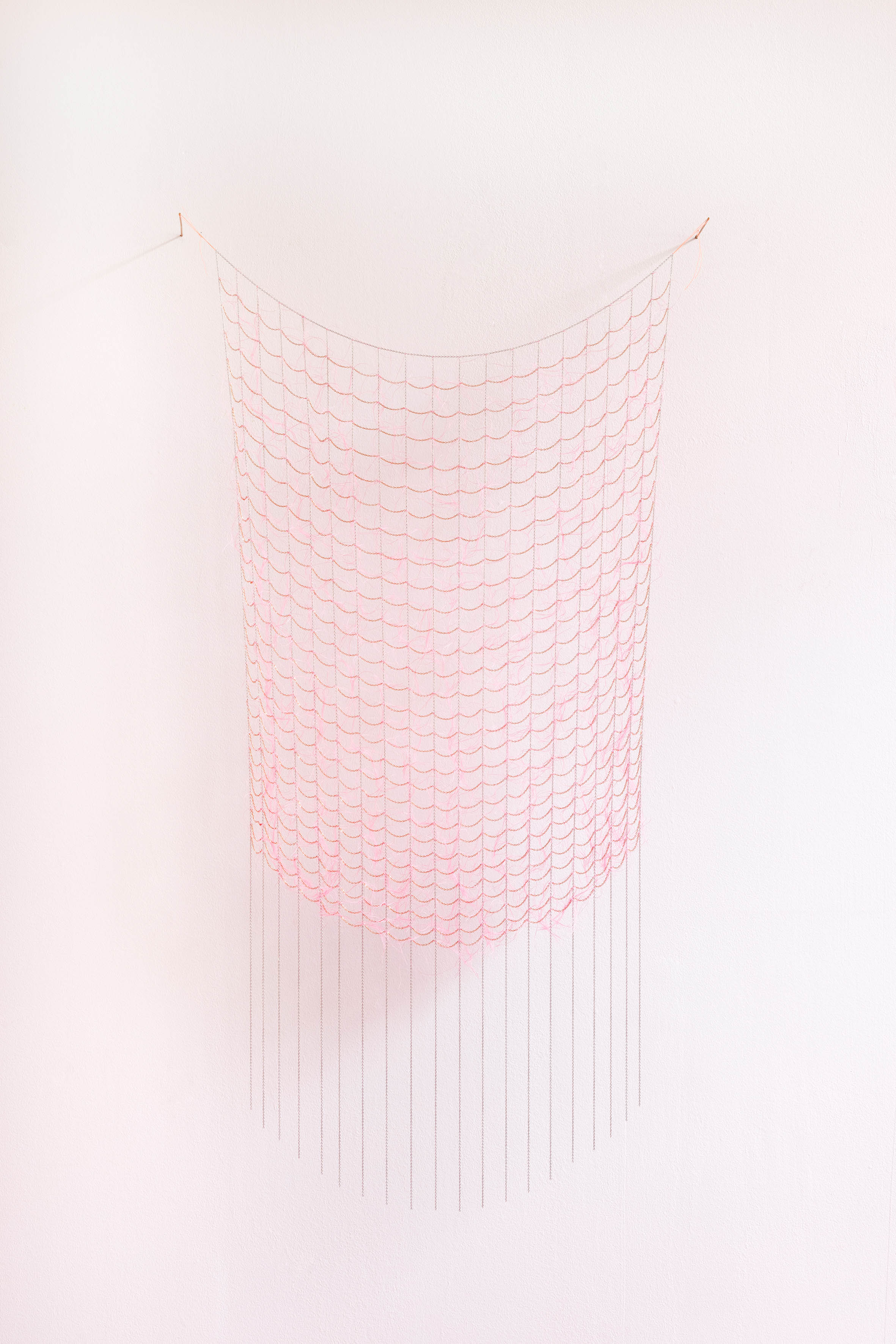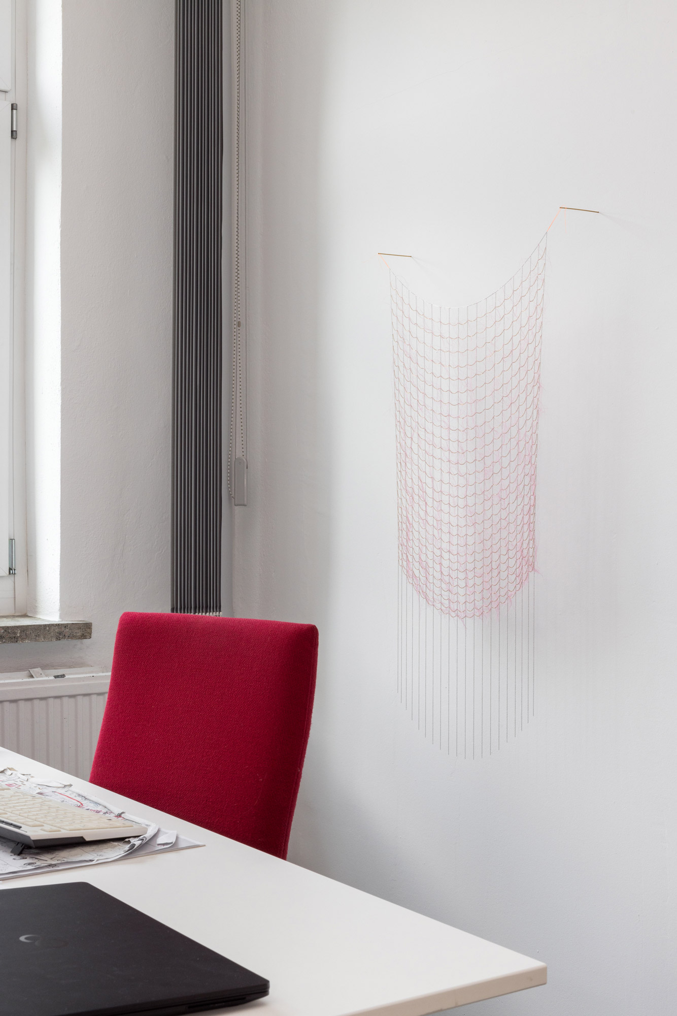 MAXIMAL MINIMAL, Schloß Agathenburg, Annis Grid Echoes In My Mind, fabric, made from anchor chain and linen, 156 x 75 x 15 cm, 2025 / photo© Manfred Wigger
